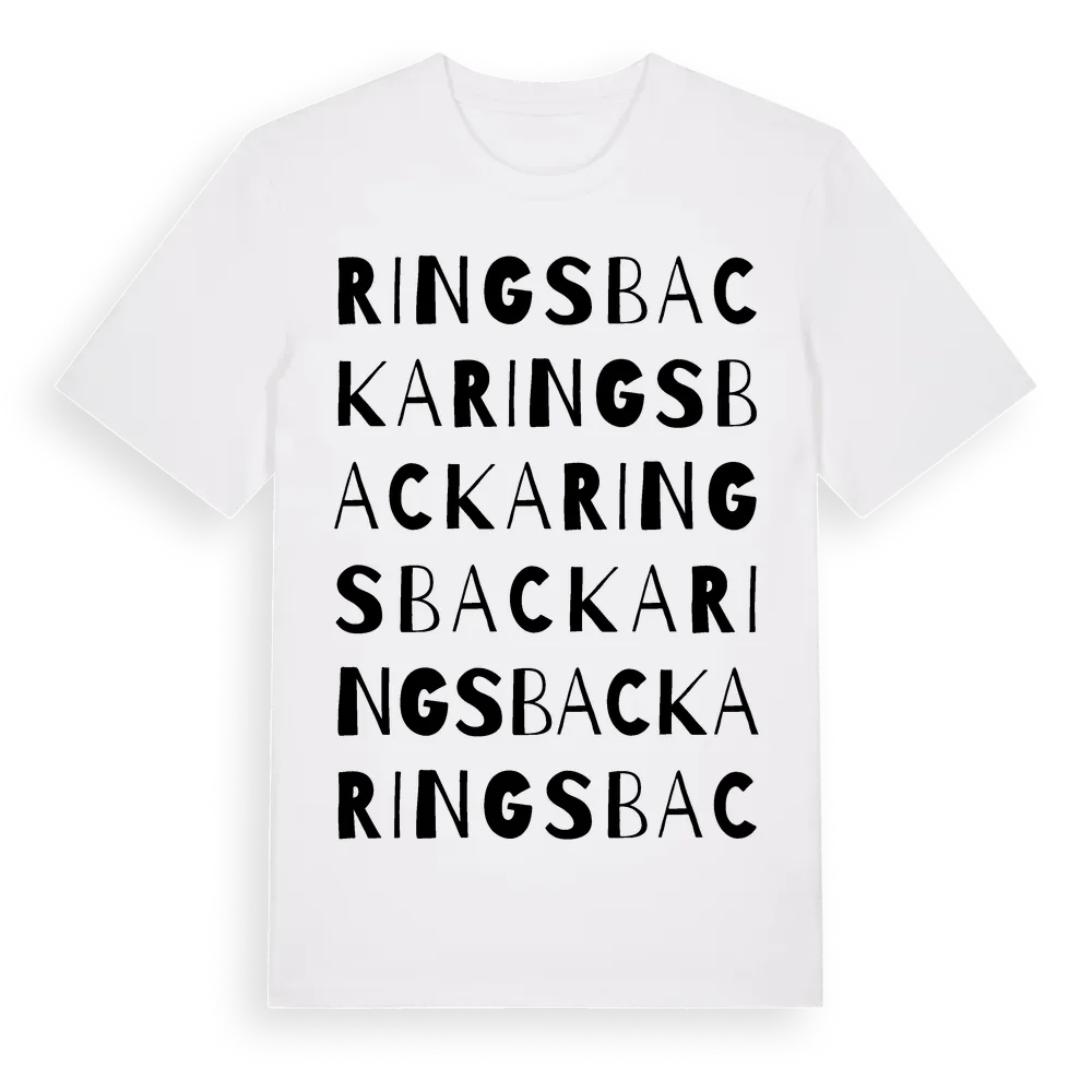 Ringsbacka ordlek t-shirt är inspirerad av byn Ringsbacka i Västra Götalands län, Sverige. Tröjan är designad för dig som har en speciell koppling till platsen – oavsett om du bor här, har rötterna här eller bara älskar Ringsbacka.