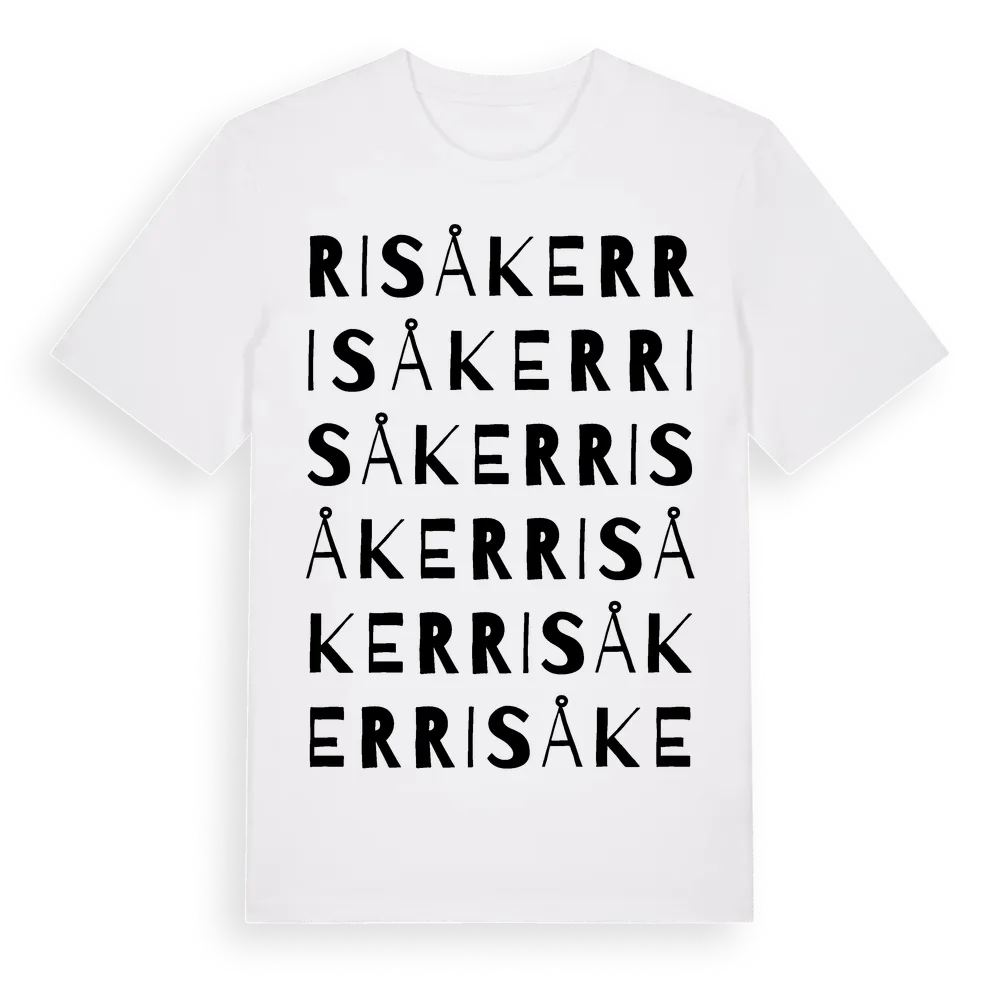 Risåker ordlek t-shirt är inspirerad av Risåker i Västra Götalands län, Sverige. Tröjan är designad för dig som har en speciell koppling till platsen – oavsett om du bor här, har rötterna här eller bara älskar Risåker.