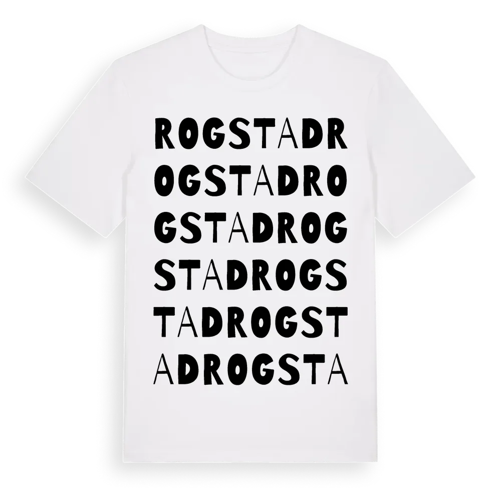 Rogstad ordlek t-shirt är inspirerad av byn Rogstad i Västra Götalands län, Sverige. Tröjan är designad för dig som har en speciell koppling till platsen – oavsett om du bor här, har rötterna här eller bara älskar Rogstad.