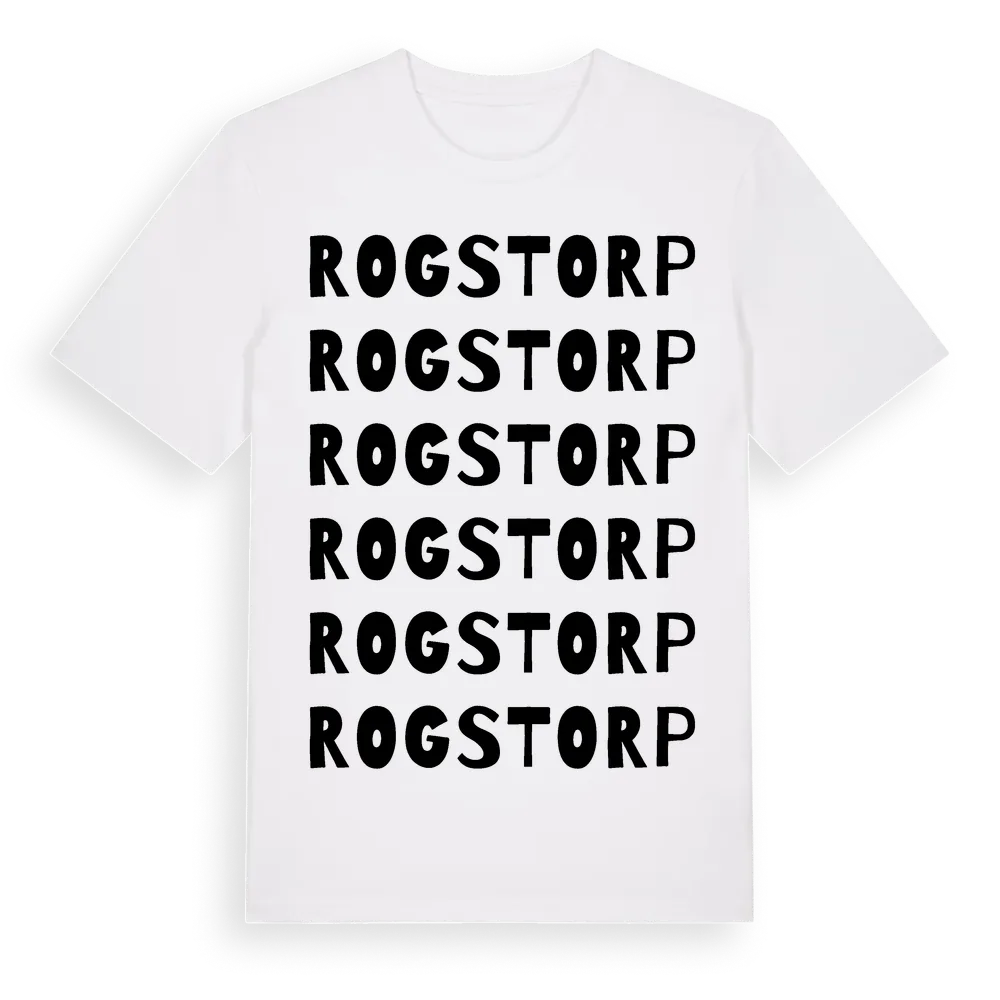 En ordlek byggd på Rogstorps namn. Subtilt och klurig – ett motiv som bara de som verkligen känner platsen fullt ut förstår. Premium bomull, unisex – från Rogstorp i Västra Götalands län.