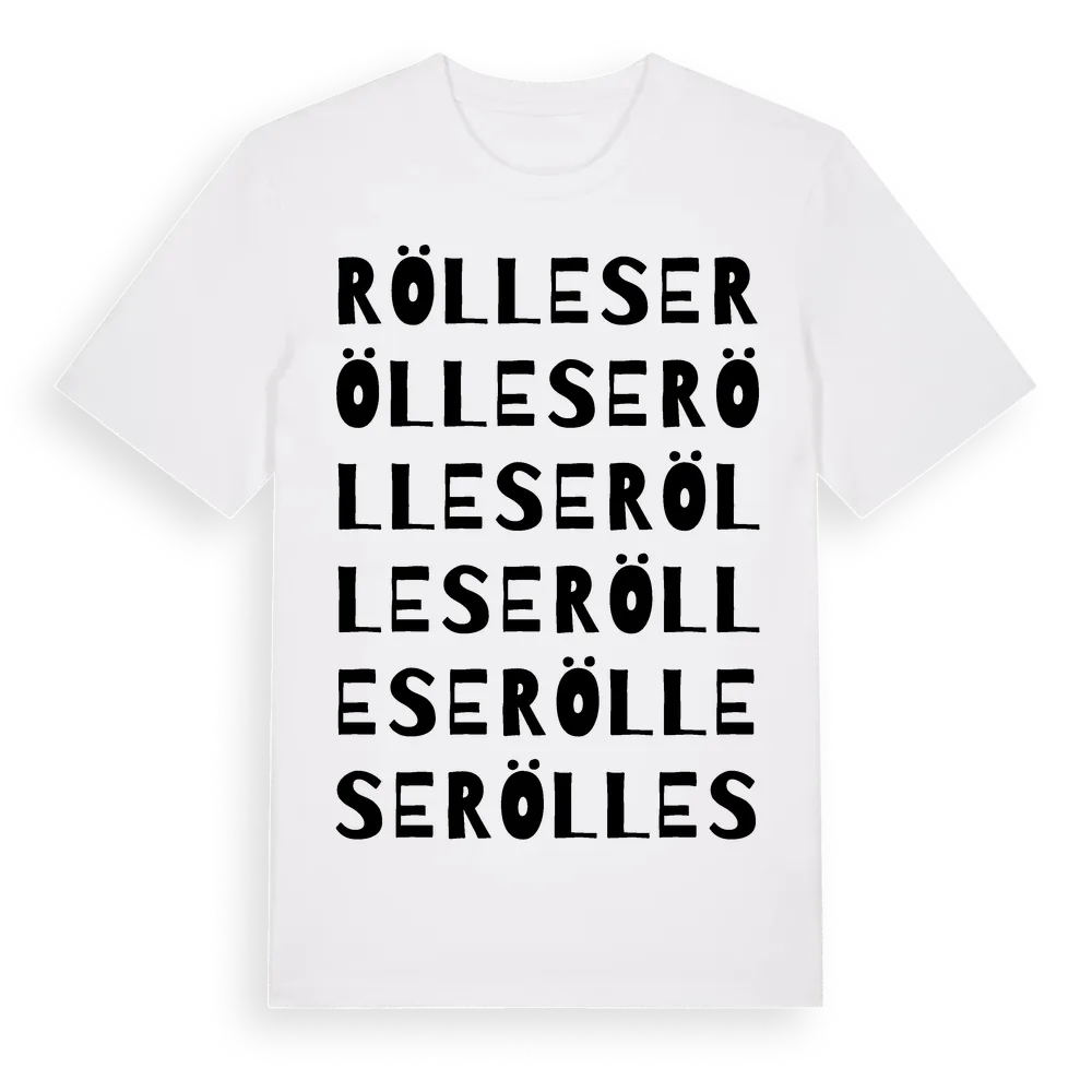 Röllese ordlek t-shirt är inspirerad av byn Röllese i Västra Götalands län, Sverige. Tröjan är designad för dig som har en speciell koppling till platsen – oavsett om du bor här, har rötterna här eller bara älskar Röllese.