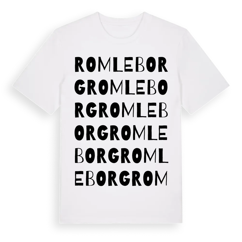 Romleborg ordlek t-shirt är inspirerad av byn Romleborg i Västra Götalands län, Sverige. Tröjan är designad för dig som har en speciell koppling till platsen – oavsett om du bor här, har rötterna här eller bara älskar Romleborg.