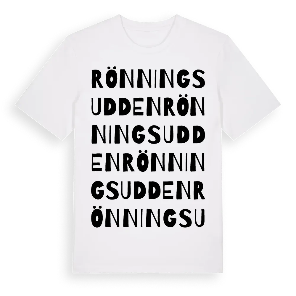 Rönningsudden ordlek t-shirt är inspirerad av Rönningsudden i Västra Götalands län, Sverige. Tröjan är designad för dig som har en speciell koppling till platsen – oavsett om du bor här, har rötterna här eller bara älskar Rönningsudden.