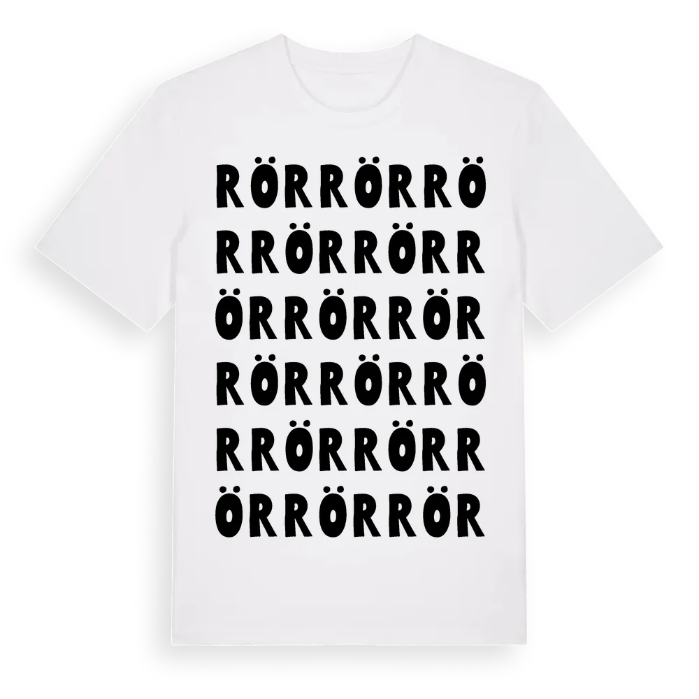 Rör ordlek t-shirt är inspirerad av byn Rör i Västra Götalands län, Sverige. Tröjan är designad för dig som har en speciell koppling till platsen – oavsett om du bor här, har rötterna här eller bara älskar Rör.