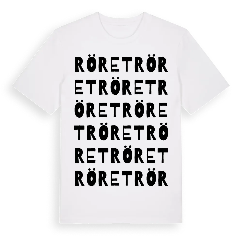 Röret ordlek t-shirt är inspirerad av Röret i Västra Götalands län, Sverige. Tröjan är designad för dig som har en speciell koppling till platsen – oavsett om du bor här, har rötterna här eller bara älskar Röret.