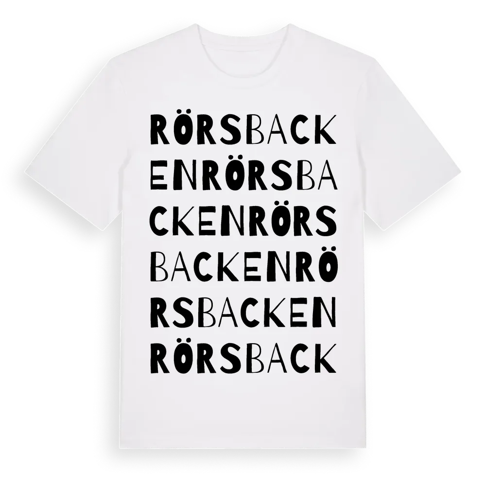 Rörsbacken ordlek t-shirt är inspirerad av Rörsbacken i Västra Götalands län, Sverige. Tröjan är designad för dig som har en speciell koppling till platsen – oavsett om du bor här, har rötterna här eller bara älskar Rörsbacken.