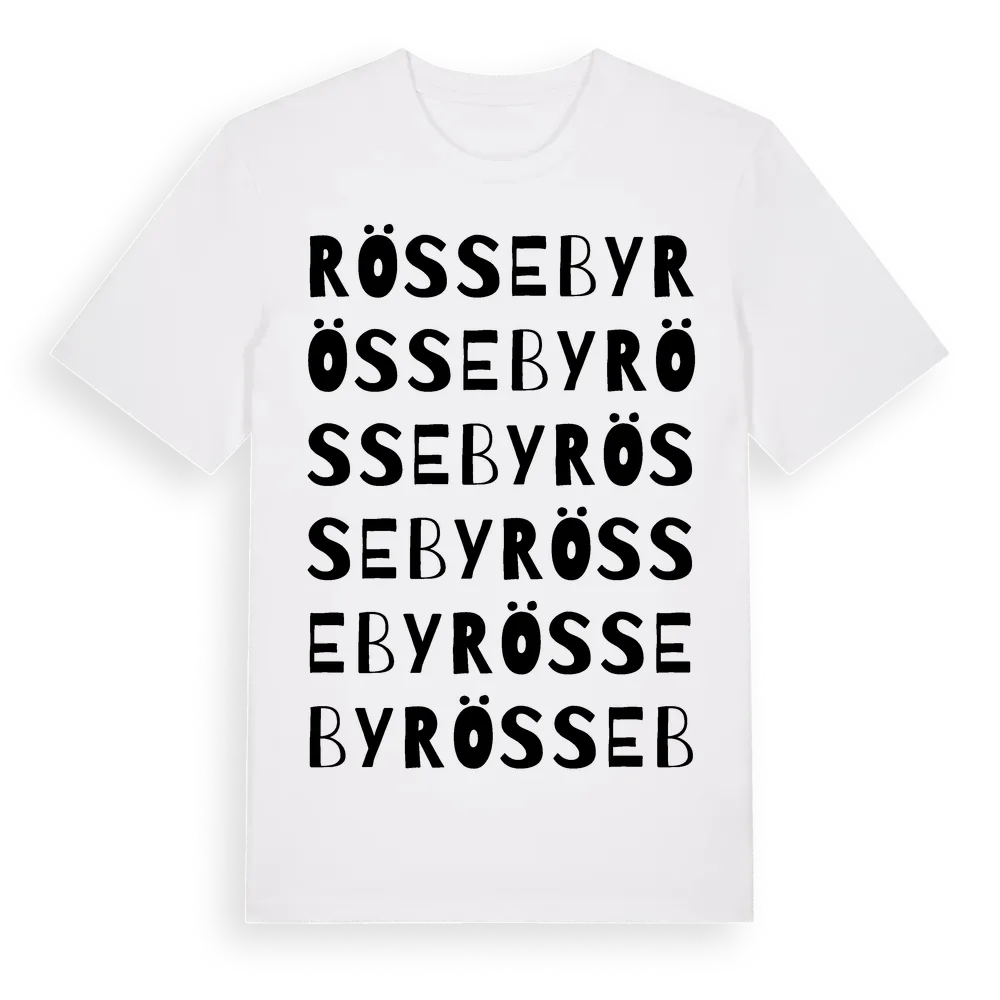 Rösseby ordlek t-shirt är inspirerad av byn Rösseby i Västra Götalands län, Sverige. Tröjan är designad för dig som har en speciell koppling till platsen – oavsett om du bor här, har rötterna här eller bara älskar Rösseby.
