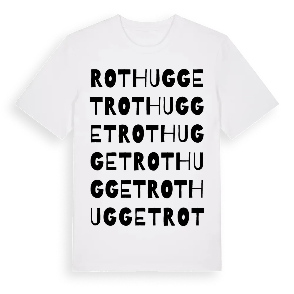 Rothugget ordlek t-shirt är inspirerad av Rothugget i Västra Götalands län, Sverige. Tröjan är designad för dig som har en speciell koppling till platsen – oavsett om du bor här, har rötterna här eller bara älskar Rothugget.
