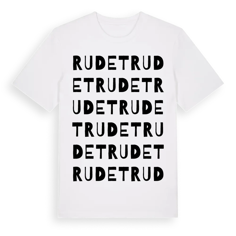 Rudet ordlek t-shirt är inspirerad av Rudet i Västra Götalands län, Sverige. Tröjan är designad för dig som har en speciell koppling till platsen – oavsett om du bor här, har rötterna här eller bara älskar Rudet.