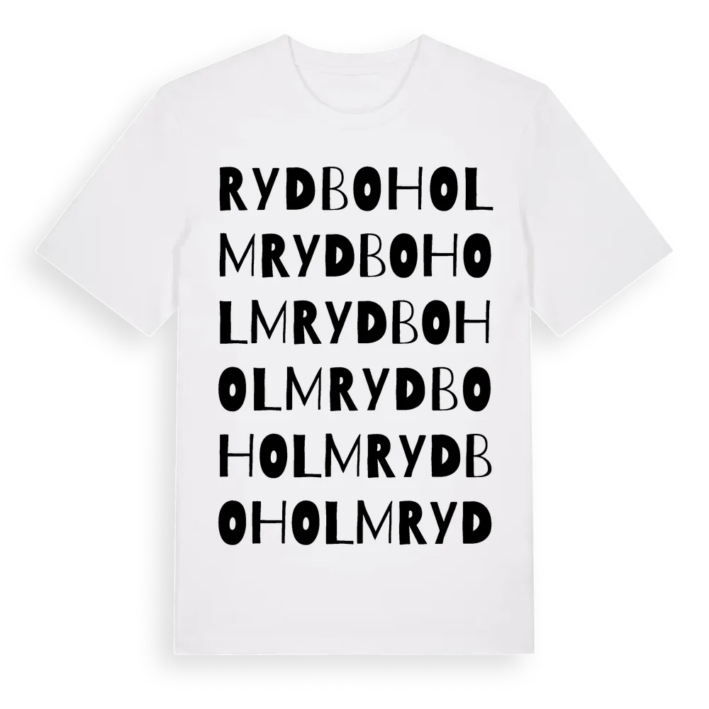 Rydboholm ordlek t-shirt är inspirerad av byn Rydboholm i Västra Götalands län, Sverige. Tröjan är designad för dig som har en speciell koppling till platsen – oavsett om du bor här, har rötterna här eller bara älskar Rydboholm.