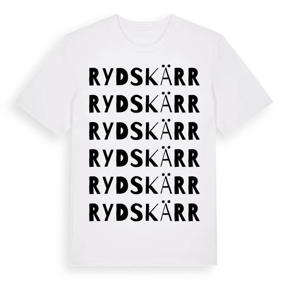 Rydskärr ordlek t-shirt är inspirerad av Rydskärr i Västra Götalands län, Sverige. Tröjan är designad för dig som har en speciell koppling till platsen – oavsett om du bor här, har rötterna här eller bara älskar Rydskärr.