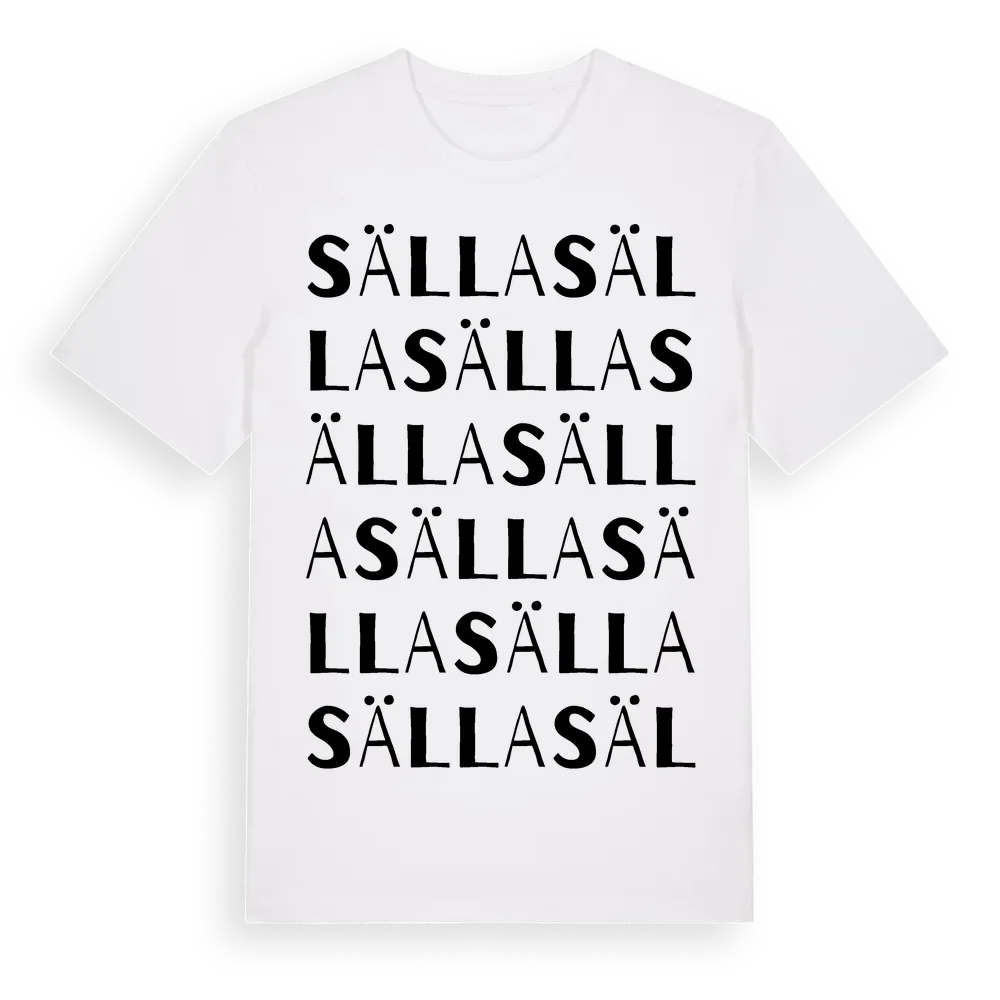 Sälla ordlek t-shirt är inspirerad av Sälla i Västra Götalands län, Sverige. Tröjan är designad för dig som har en speciell koppling till platsen – oavsett om du bor här, har rötterna här eller bara älskar Sälla.