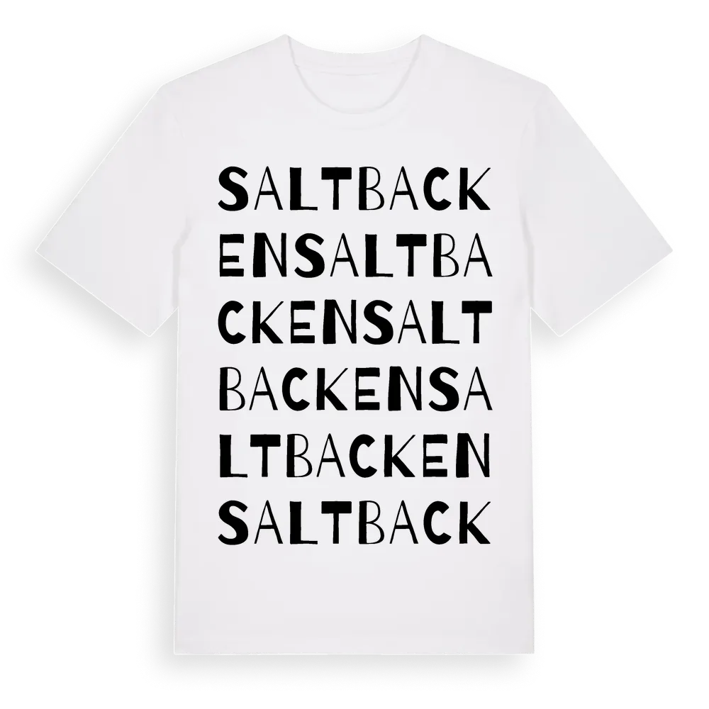 En ordlek byggd på Saltbackens namn. Subtilt och klurig – ett motiv som bara de som verkligen känner platsen fullt ut förstår. Premium bomull, unisex – från byn Saltbacken i Västra Götalands län.