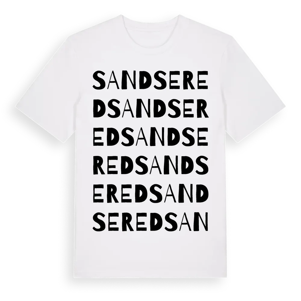 Sandsered ordlek t-shirt är inspirerad av byn Sandsered i Västra Götalands län, Sverige. Tröjan är designad för dig som har en speciell koppling till platsen – oavsett om du bor här, har rötterna här eller bara älskar Sandsered.