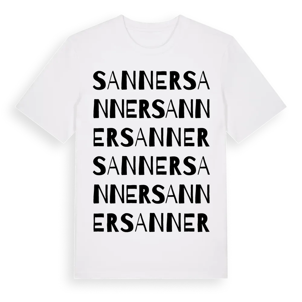 Sanner ordlek t-shirt är inspirerad av Sanner i Västra Götalands län, Sverige. Tröjan är designad för dig som har en speciell koppling till platsen – oavsett om du bor här, har rötterna här eller bara älskar Sanner.
