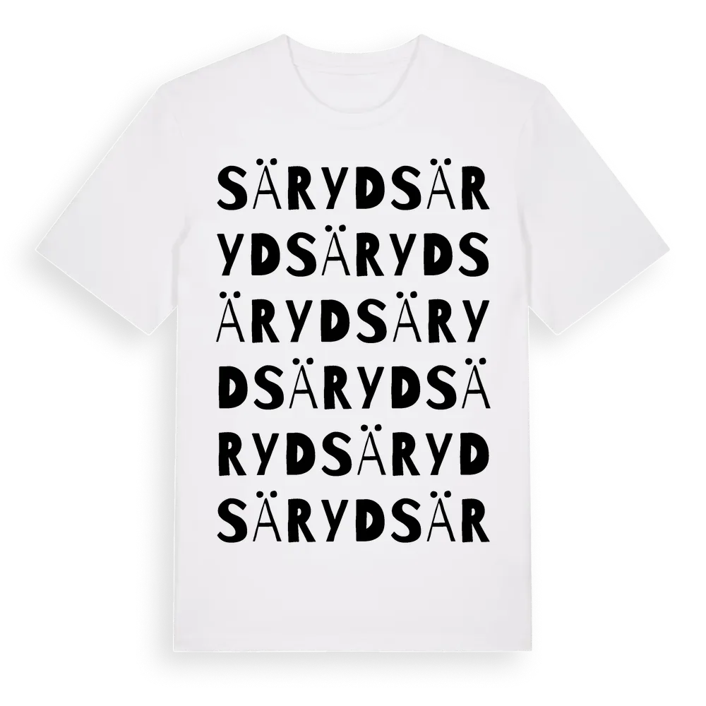 Säryd ordlek t-shirt är inspirerad av byn Säryd i Västra Götalands län, Sverige. Tröjan är designad för dig som har en speciell koppling till platsen – oavsett om du bor här, har rötterna här eller bara älskar Säryd.