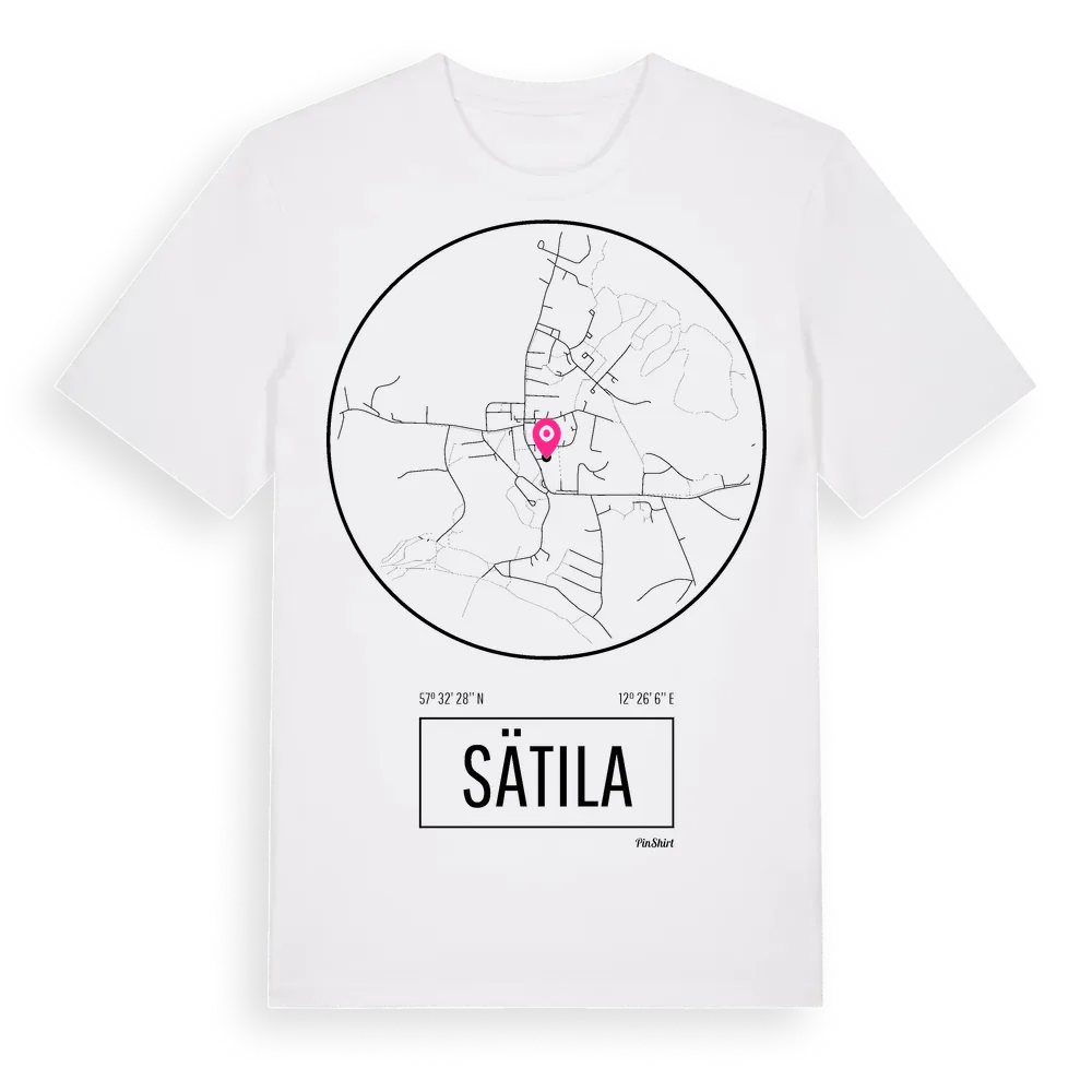 Sätila t-shirt är inspirerad av byn Sätila i Västra Götalands län, Sverige. Tröjan är designad för dig som har en speciell koppling till platsen – oavsett om du bor här, har rötterna här eller bara älskar Sätila.