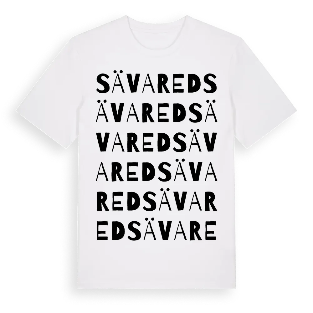 Sävared ordlek t-shirt är inspirerad av Sävared i Västra Götalands län, Sverige. Tröjan är designad för dig som har en speciell koppling till platsen – oavsett om du bor här, har rötterna här eller bara älskar Sävared.