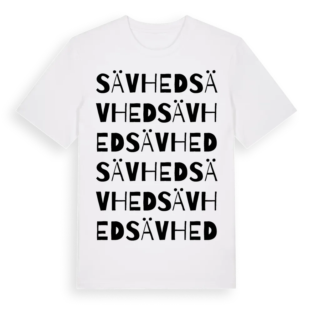 Sävhed ordlek t-shirt är inspirerad av Sävhed i Västra Götalands län, Sverige. Tröjan är designad för dig som har en speciell koppling till platsen – oavsett om du bor här, har rötterna här eller bara älskar Sävhed.