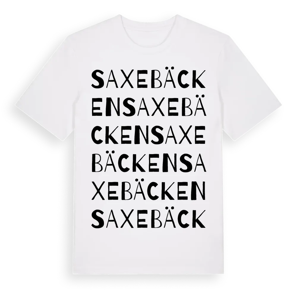 Saxebäcken ordlek t-shirt är inspirerad av byn Saxebäcken i Västra Götalands län, Sverige. Tröjan är designad för dig som har en speciell koppling till platsen – oavsett om du bor här, har rötterna här eller bara älskar Saxebäcken.