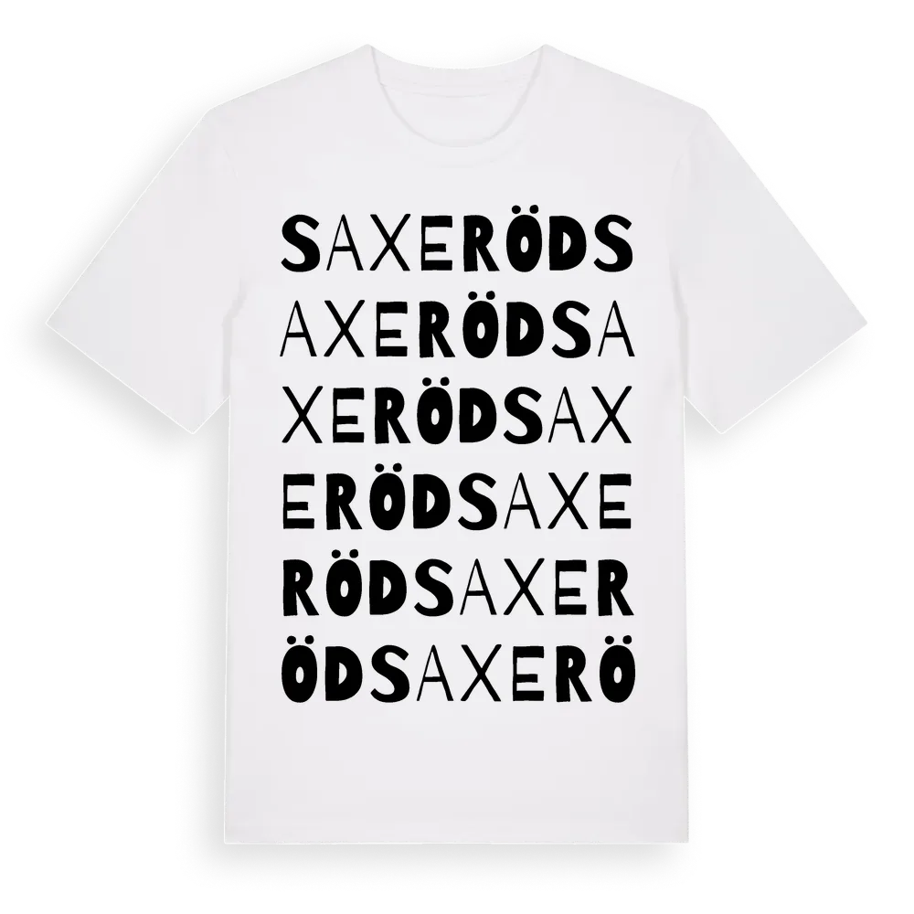 Saxeröd ordlek t-shirt är inspirerad av byn Saxeröd i Västra Götalands län, Sverige. Tröjan är designad för dig som har en speciell koppling till platsen – oavsett om du bor här, har rötterna här eller bara älskar Saxeröd.