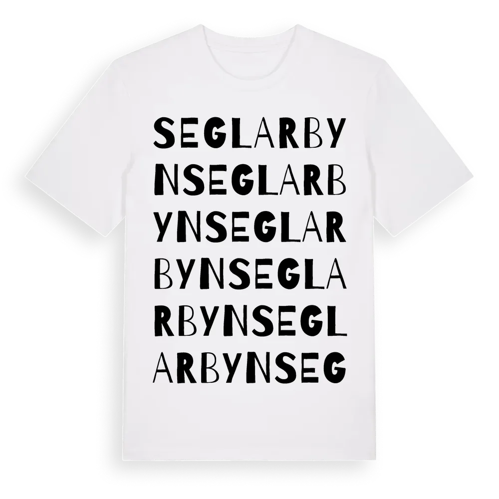 Seglarbyn ordlek t-shirt är inspirerad av stadsdelen Seglarbyn i Västra Götalands län, Sverige. Tröjan är designad för dig som har en speciell koppling till platsen – oavsett om du bor här, har rötterna här eller bara älskar Seglarbyn.