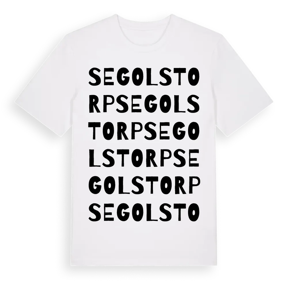 Segolstorp ordlek t-shirt är inspirerad av Segolstorp i Västra Götalands län, Sverige. Tröjan är designad för dig som har en speciell koppling till platsen – oavsett om du bor här, har rötterna här eller bara älskar Segolstorp.