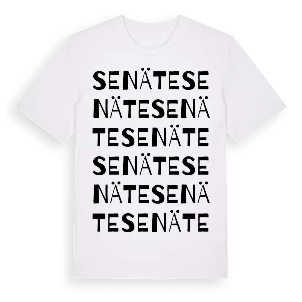 En ordlek byggd på Senätes namn. Subtilt och klurig – ett motiv som bara de som verkligen känner platsen fullt ut förstår. Premium bomull, unisex – från Senäte i Västra Götalands län.