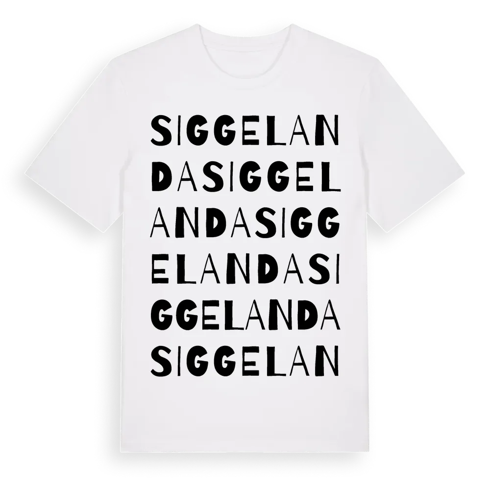 En ordlek byggd på Siggelandas namn. Subtilt och klurig – ett motiv som bara de som verkligen känner platsen fullt ut förstår. Premium bomull, unisex – från Siggelanda i Västra Götalands län.