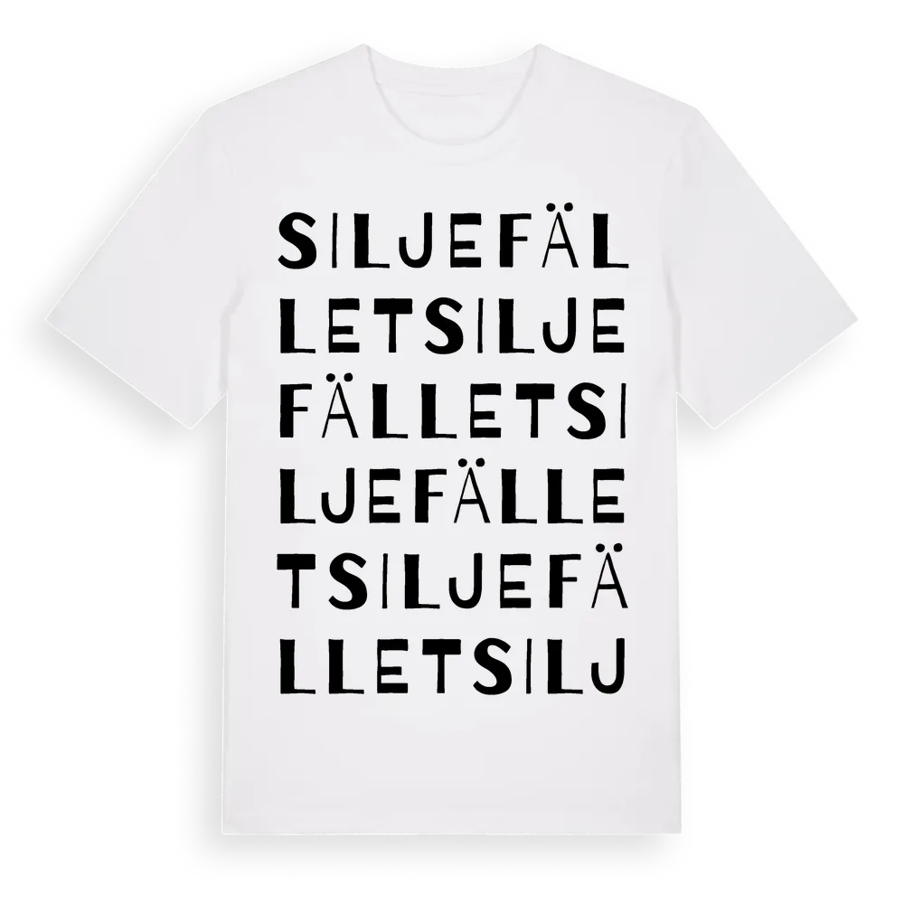 Siljefället ordlek t-shirt är inspirerad av Siljefället i Västra Götalands län, Sverige. Tröjan är designad för dig som har en speciell koppling till platsen – oavsett om du bor här, har rötterna här eller bara älskar Siljefället.
