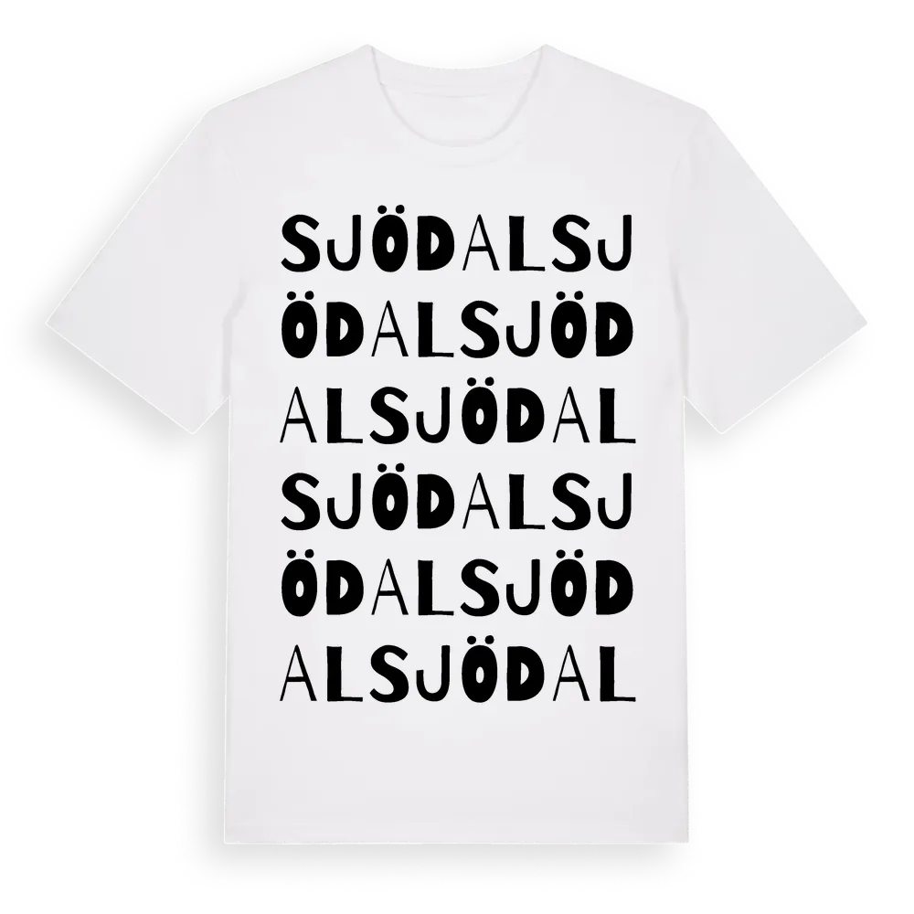 Sjödal ordlek t-shirt är inspirerad av stadsdelen Sjödal i Västra Götalands län, Sverige. Tröjan är designad för dig som har en speciell koppling till platsen – oavsett om du bor här, har rötterna här eller bara älskar Sjödal.