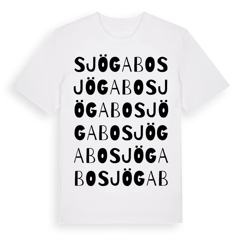 Sjögabo ordlek t-shirt är inspirerad av byn Sjögabo i Västra Götalands län, Sverige. Tröjan är designad för dig som har en speciell koppling till platsen – oavsett om du bor här, har rötterna här eller bara älskar Sjögabo.