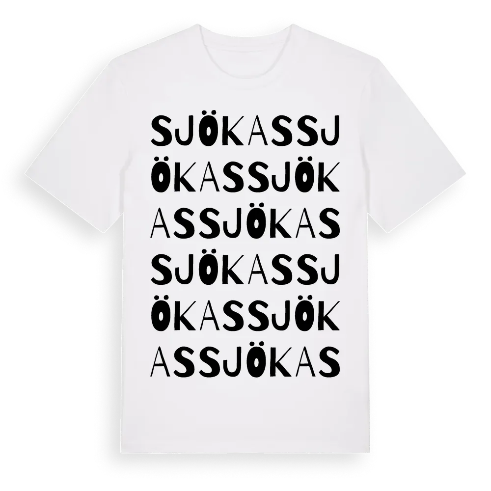 Sjökas ordlek t-shirt är inspirerad av Sjökas i Västra Götalands län, Sverige. Tröjan är designad för dig som har en speciell koppling till platsen – oavsett om du bor här, har rötterna här eller bara älskar Sjökas.