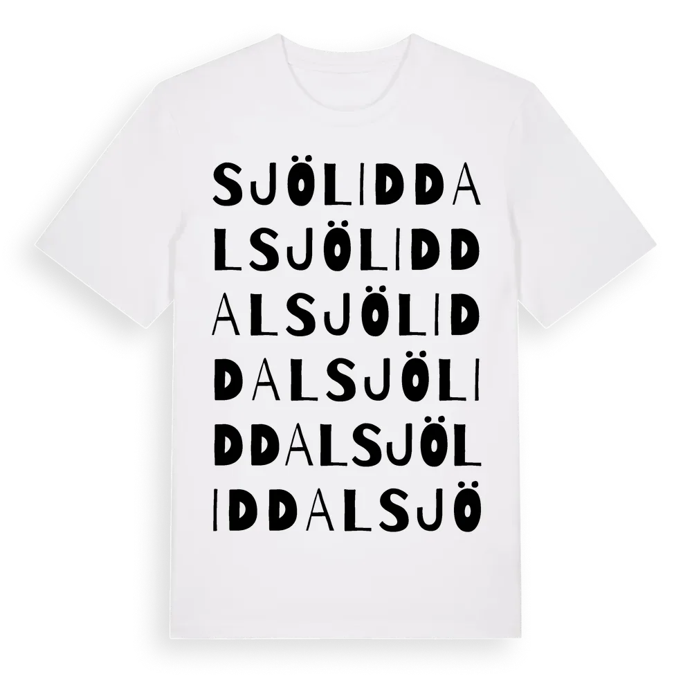 Sjöliddal ordlek t-shirt är inspirerad av Sjöliddal i Västra Götalands län, Sverige. Tröjan är designad för dig som har en speciell koppling till platsen – oavsett om du bor här, har rötterna här eller bara älskar Sjöliddal.