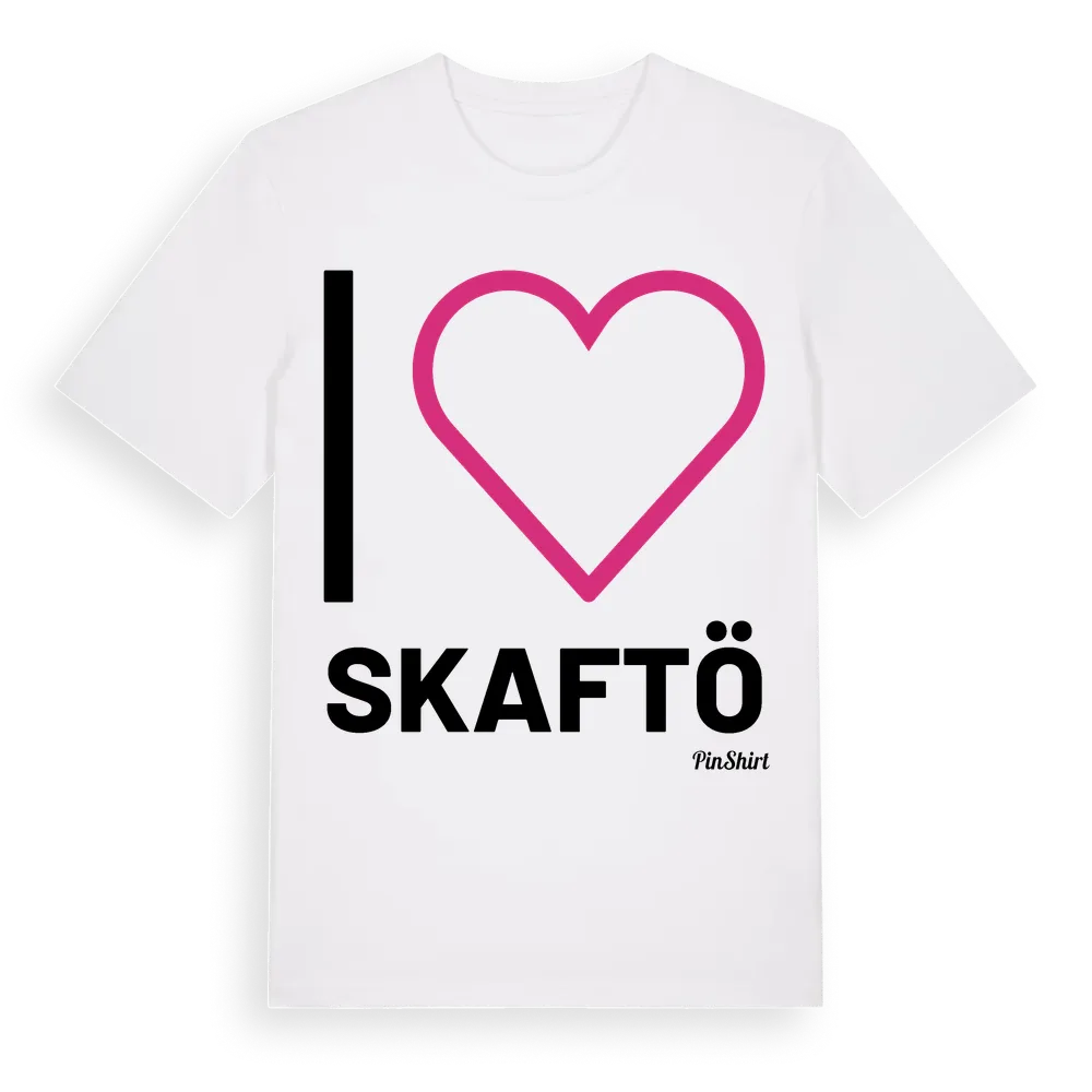 Det klassiska "I ❤ Skaftö"-motivet i stort format som täcker hela bröstet. För dig som vill visa kärleken till Skaftö på riktigt. Premium bomull, unisex – från ön Skaftö i Västra Götalands län.