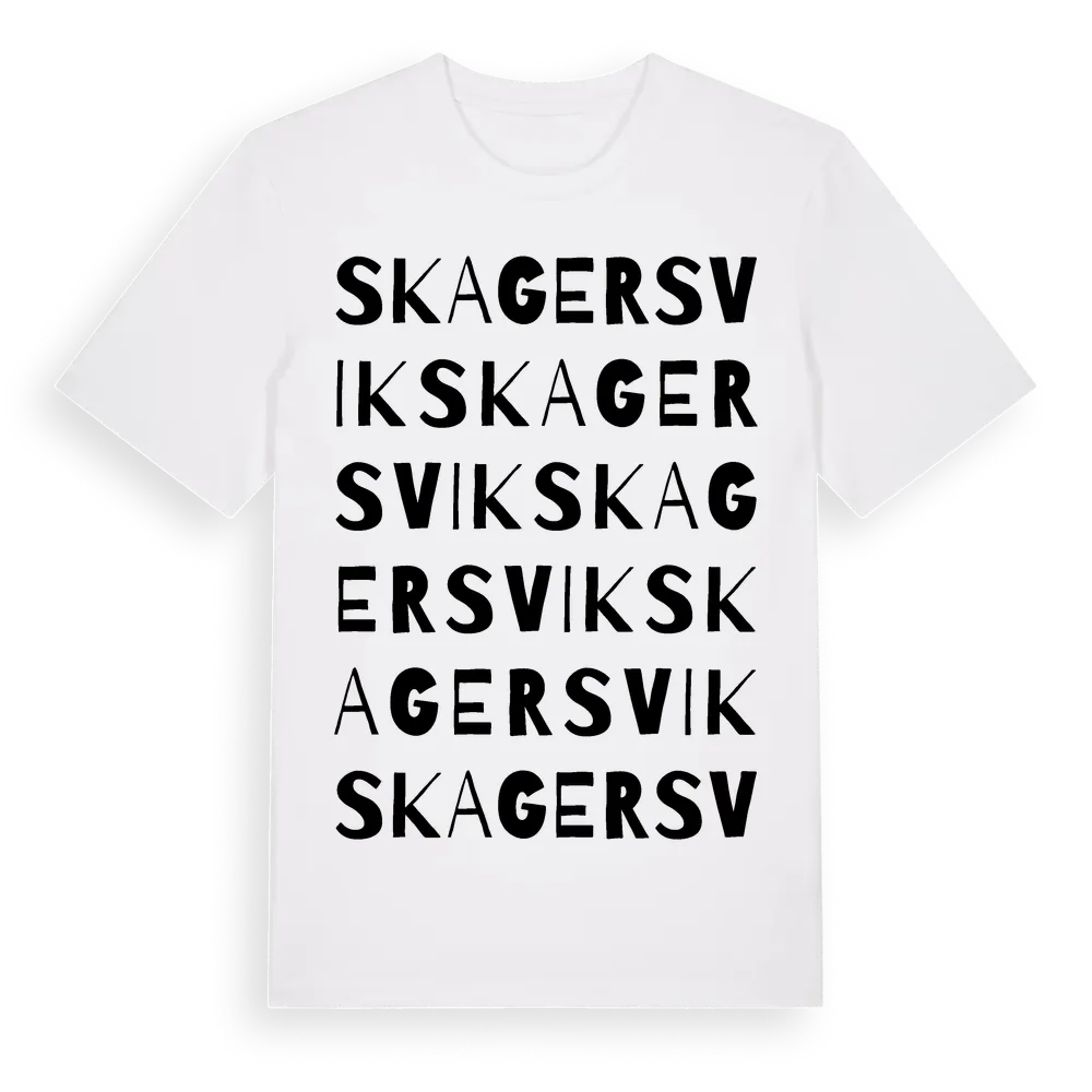 Skagersvik ordlek t-shirt är inspirerad av byn Skagersvik i Västra Götalands län, Sverige. Tröjan är designad för dig som har en speciell koppling till platsen – oavsett om du bor här, har rötterna här eller bara älskar Skagersvik.