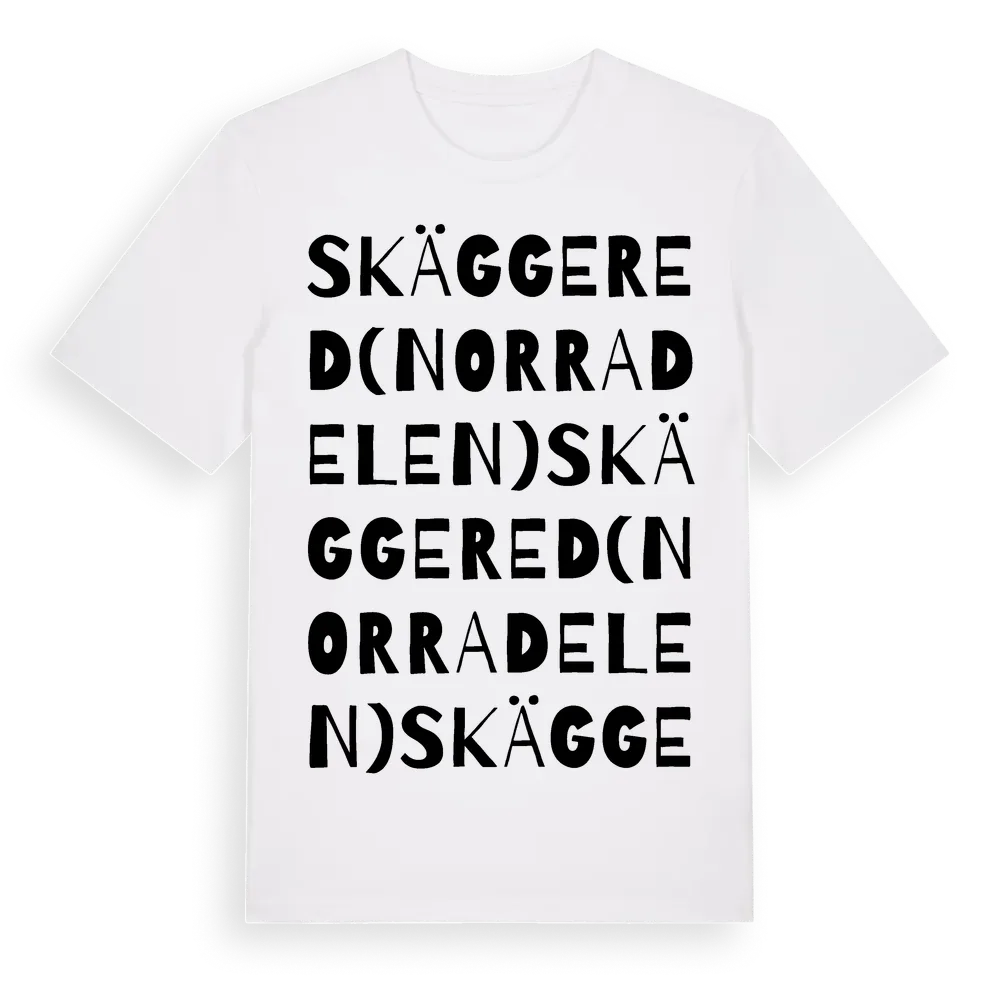 Skäggered (Norra Delen) ordlek t-shirt är inspirerad av byn Skäggered (Norra Delen) i Västra Götalands län, Sverige. Tröjan är designad för dig som har en speciell koppling till platsen – oavsett om du bor här, har rötterna här eller bara älskar Skäggered (Norra Delen).