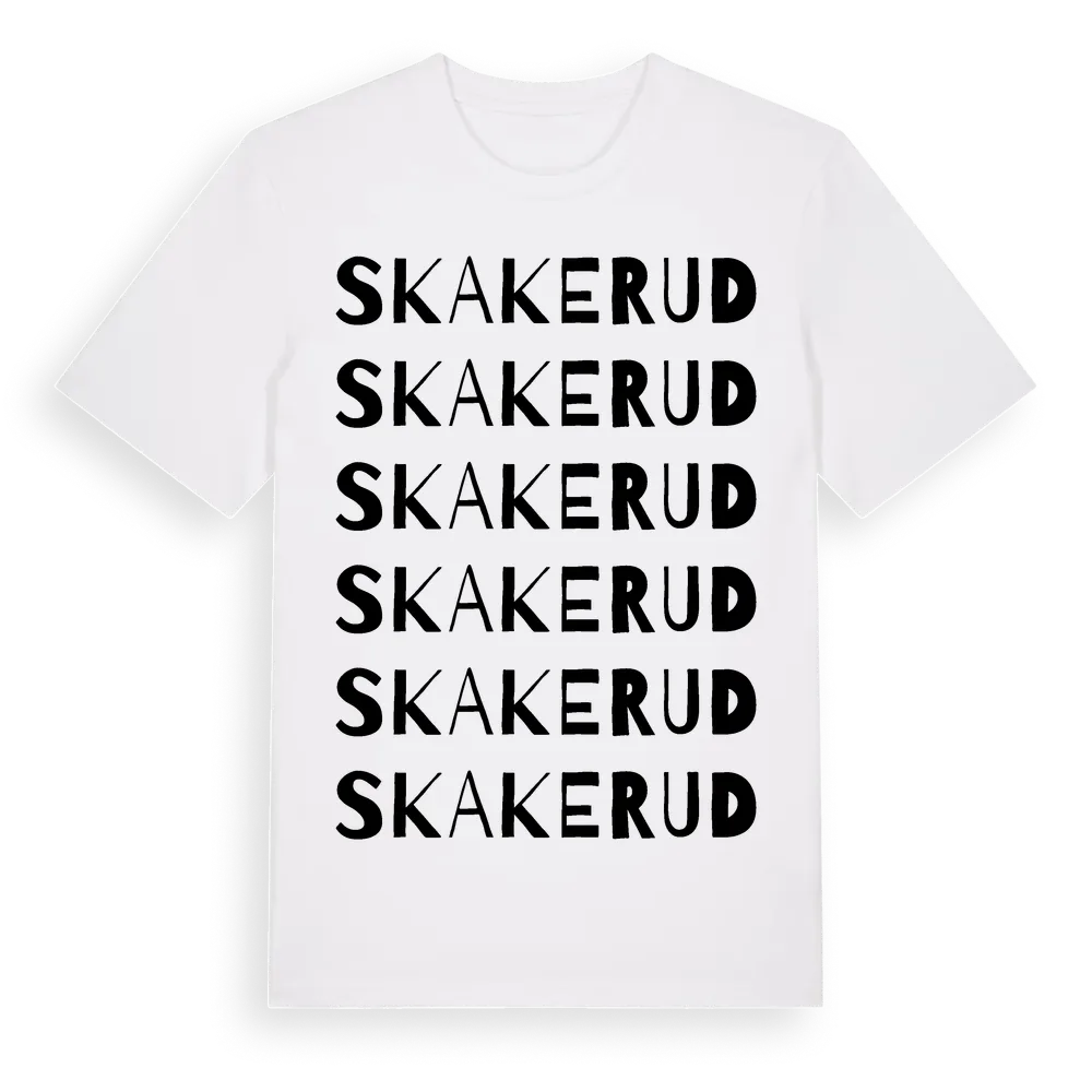 Skakerud ordlek t-shirt är inspirerad av Skakerud i Västra Götalands län, Sverige. Tröjan är designad för dig som har en speciell koppling till platsen – oavsett om du bor här, har rötterna här eller bara älskar Skakerud.