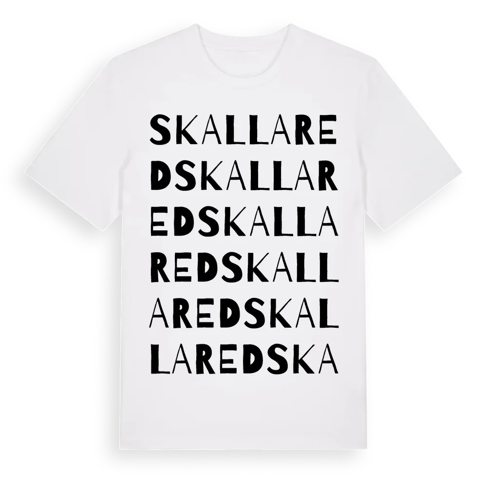 Skallared ordlek t-shirt är inspirerad av byn Skallared i Västra Götalands län, Sverige. Tröjan är designad för dig som har en speciell koppling till platsen – oavsett om du bor här, har rötterna här eller bara älskar Skallared.