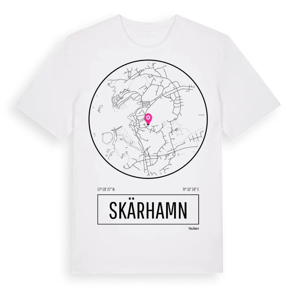 Skärhamn t-shirt är inspirerad av staden Skärhamn i Västra Götalands län, Sverige. Tröjan är designad för dig som har en speciell koppling till platsen – oavsett om du bor här, har rötterna här eller bara älskar Skärhamn.