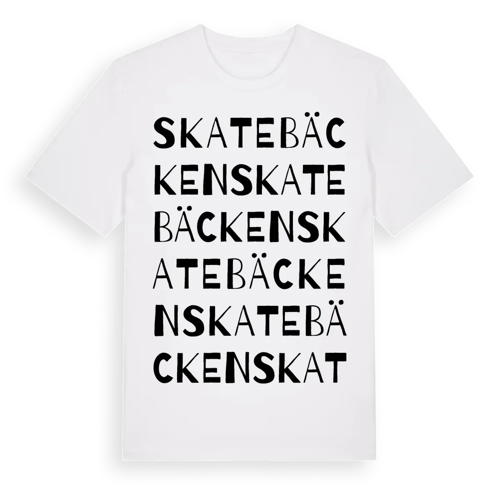 Skatebäcken ordlek t-shirt är inspirerad av Skatebäcken i Västra Götalands län, Sverige. Tröjan är designad för dig som har en speciell koppling till platsen – oavsett om du bor här, har rötterna här eller bara älskar Skatebäcken.