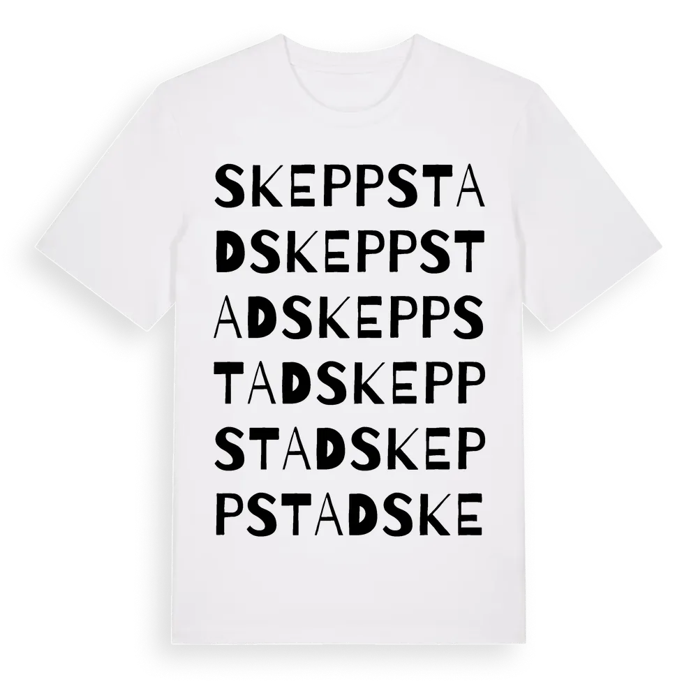 Skeppstad ordlek t-shirt är inspirerad av Skeppstad i Västra Götalands län, Sverige. Tröjan är designad för dig som har en speciell koppling till platsen – oavsett om du bor här, har rötterna här eller bara älskar Skeppstad.