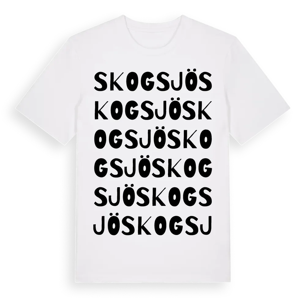 Skogsjö ordlek t-shirt är inspirerad av Skogsjö i Västra Götalands län, Sverige. Tröjan är designad för dig som har en speciell koppling till platsen – oavsett om du bor här, har rötterna här eller bara älskar Skogsjö.