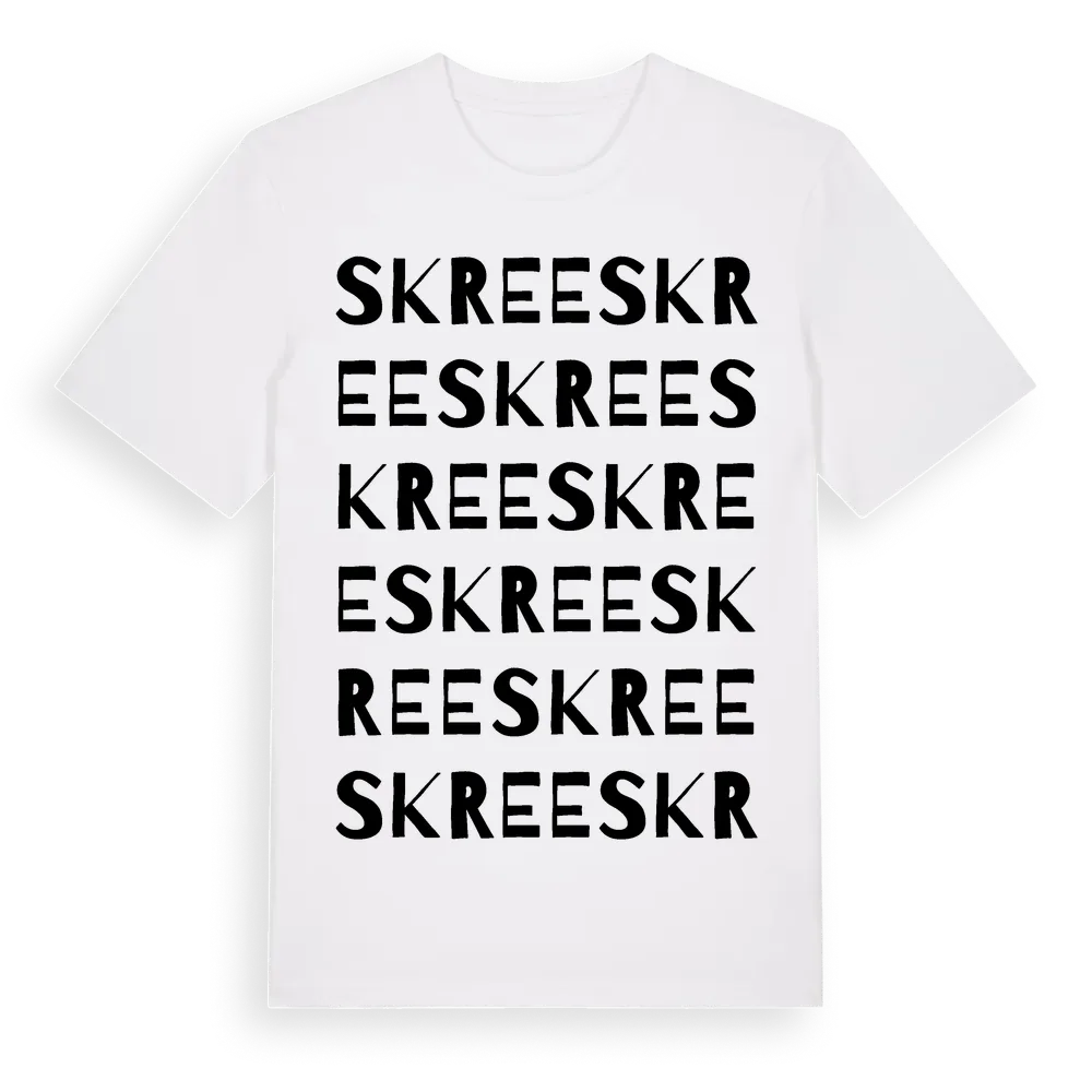 Skree ordlek t-shirt är inspirerad av stadsdelen Skree i Västra Götalands län, Sverige. Tröjan är designad för dig som har en speciell koppling till platsen – oavsett om du bor här, har rötterna här eller bara älskar Skree.
