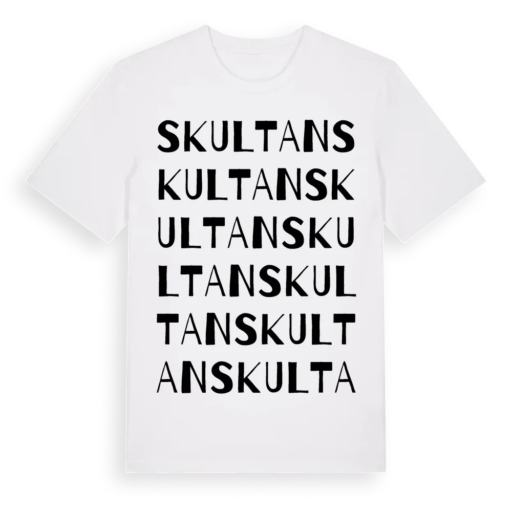 Skultan ordlek t-shirt är inspirerad av Skultan i Västra Götalands län, Sverige. Tröjan är designad för dig som har en speciell koppling till platsen – oavsett om du bor här, har rötterna här eller bara älskar Skultan.