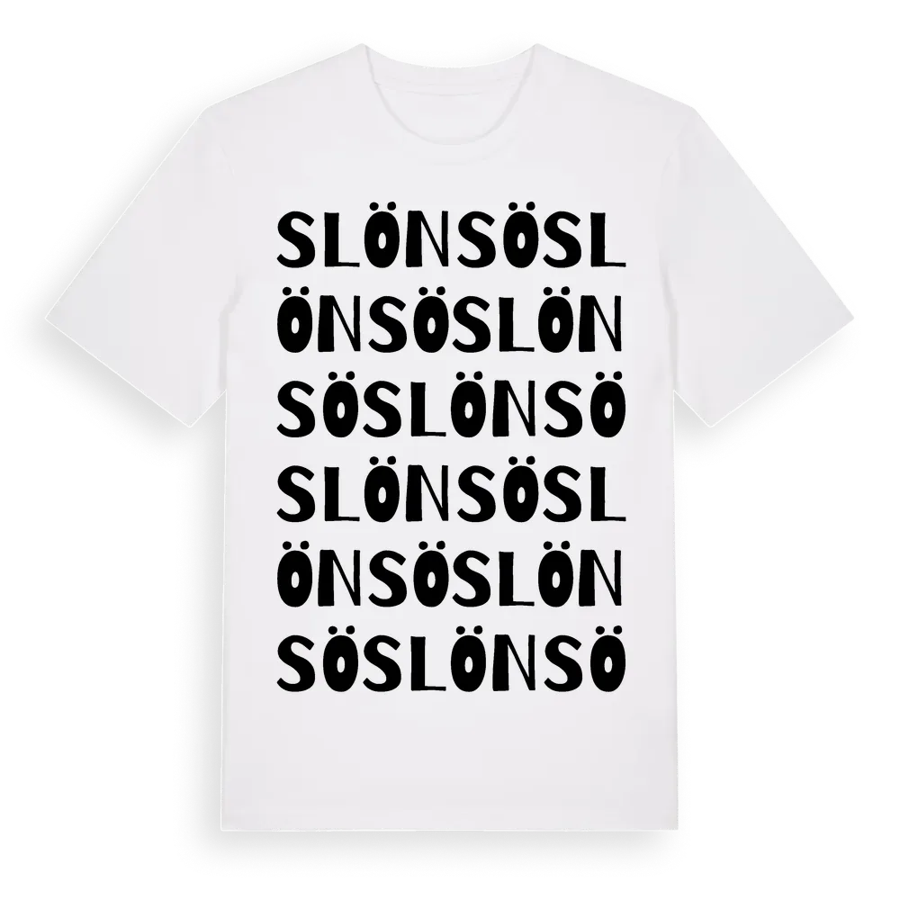Slönsö ordlek t-shirt är inspirerad av stadsdelen Slönsö i Västra Götalands län, Sverige. Tröjan är designad för dig som har en speciell koppling till platsen – oavsett om du bor här, har rötterna här eller bara älskar Slönsö.