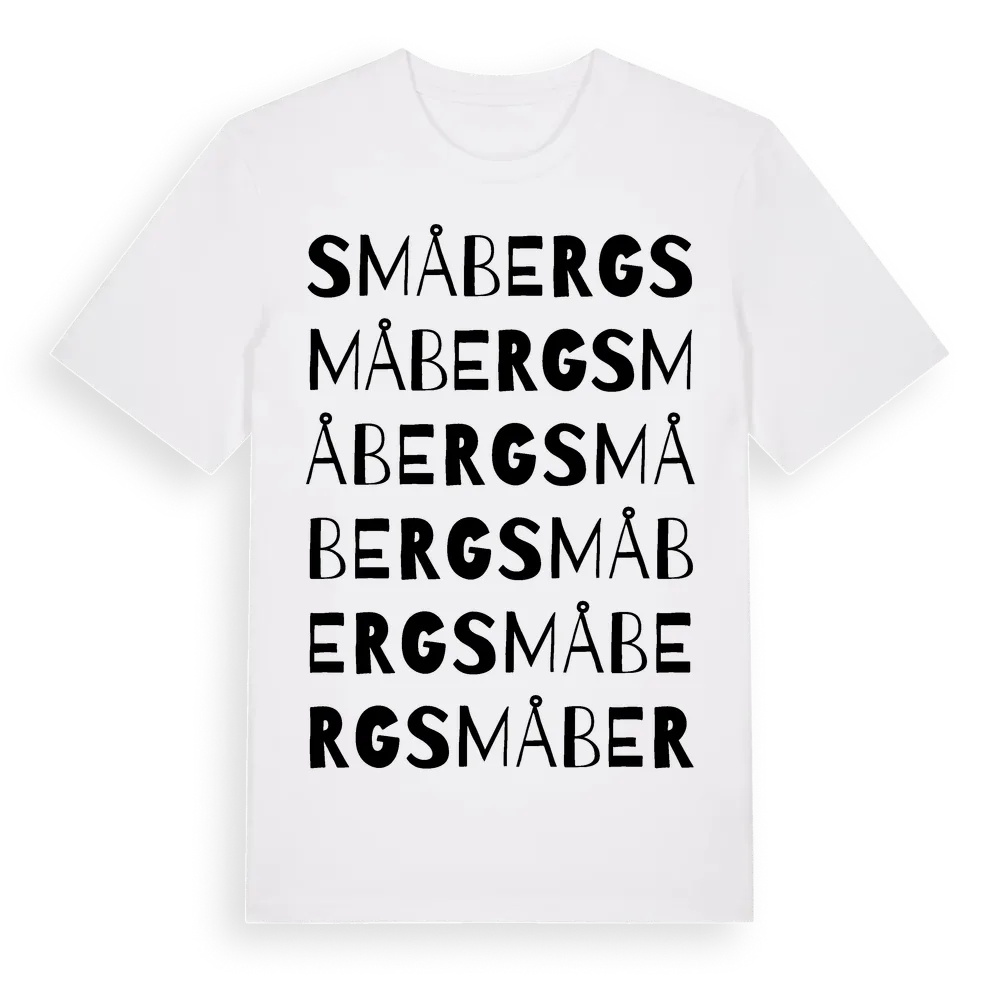 Småberg ordlek t-shirt är inspirerad av byn Småberg i Västra Götalands län, Sverige. Tröjan är designad för dig som har en speciell koppling till platsen – oavsett om du bor här, har rötterna här eller bara älskar Småberg.