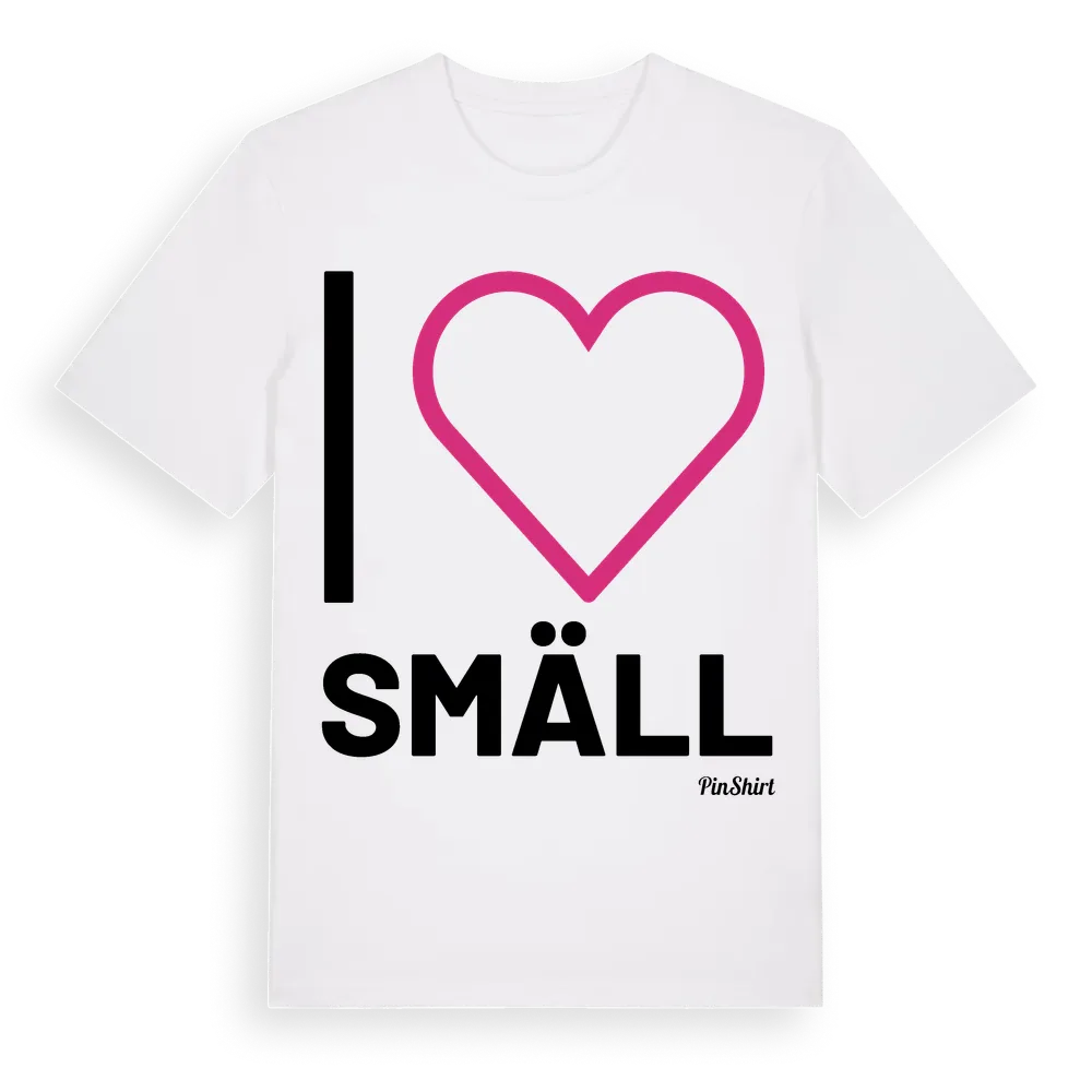 Jag älskar Smäll t-shirt stort tryck är inspirerad av Smäll i Västra Götalands län, Sverige. Tröjan är designad för dig som har en speciell koppling till platsen – oavsett om du bor här, har rötterna här eller bara älskar Smäll.