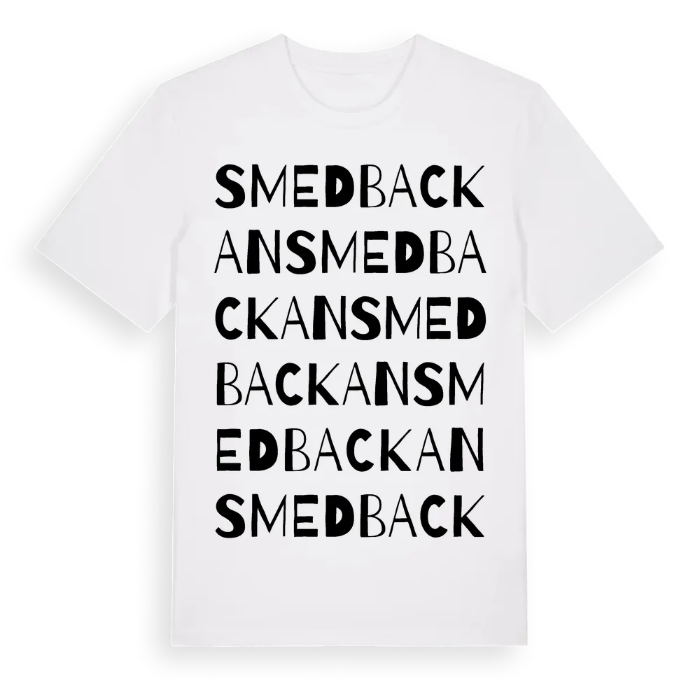 Smedbackan ordlek t-shirt är inspirerad av Smedbackan i Västra Götalands län, Sverige. Tröjan är designad för dig som har en speciell koppling till platsen – oavsett om du bor här, har rötterna här eller bara älskar Smedbackan.