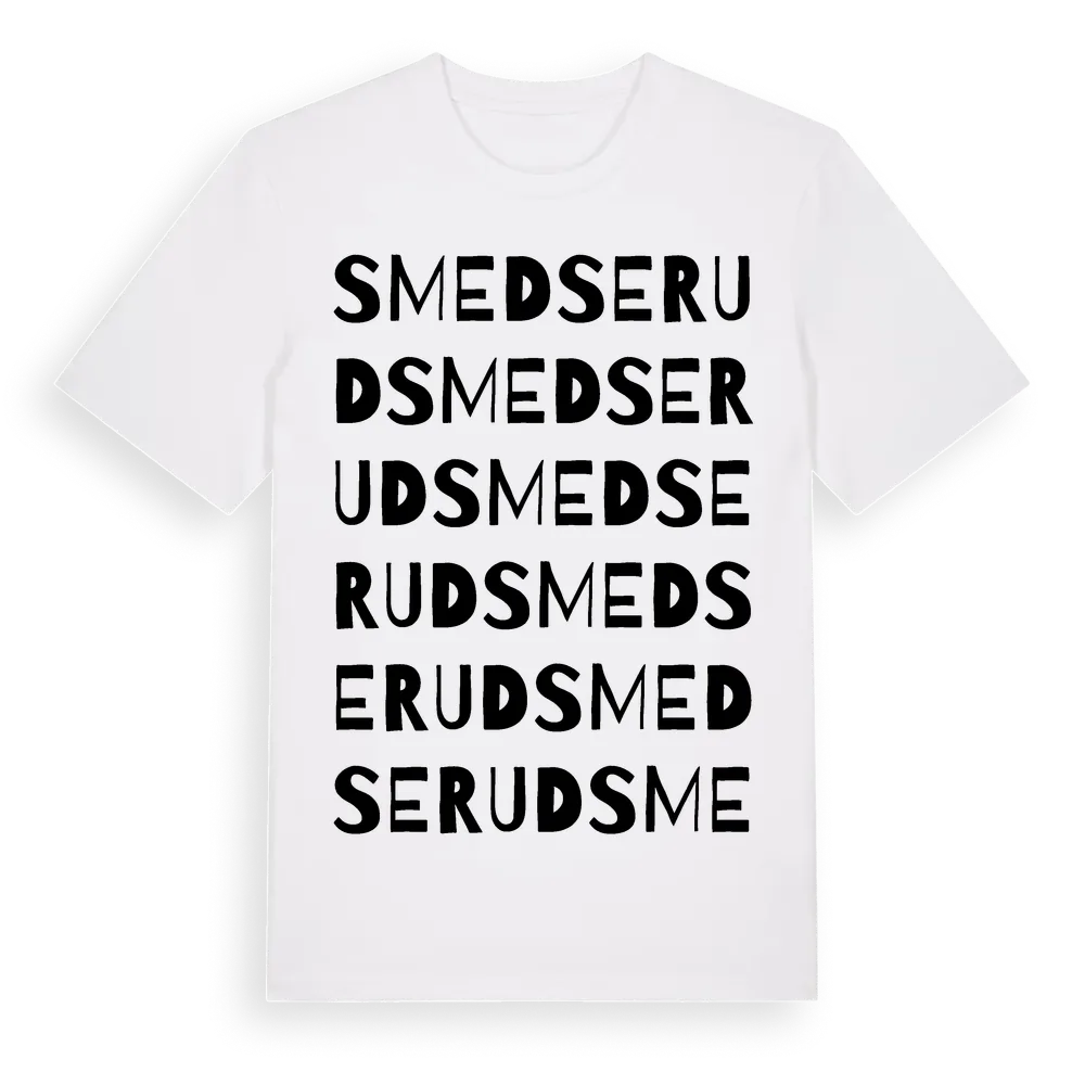 Smedserud ordlek t-shirt är inspirerad av Smedserud i Västra Götalands län, Sverige. Tröjan är designad för dig som har en speciell koppling till platsen – oavsett om du bor här, har rötterna här eller bara älskar Smedserud.